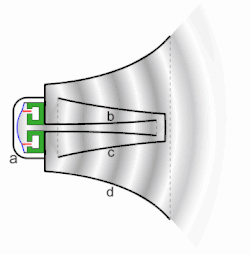 How a horn loudspeaker works. (A) compression driver (B) horn