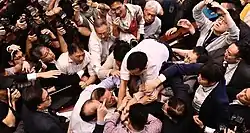 - 11 May 2019: A clash broke out as the pro-democracy and pro-Beijing camps called separate meetings of the Bills Committee of the controversial Fugitive Offenders and Mutual Legal Assistance in Criminal Matters Legislation (Amendment) Bill 2019 at the same room. A number of legislators fell to the ground as they pushed and shoved each other along the packed hallway. Gary Fan fell to the ground after standing on a table, and appearing to have fainted before he was sent to hospital.[12]