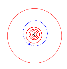 Orbit of Tiziano (blue), with the inner planets and Jupiter (outermost)