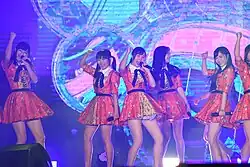 AKB48's first sister group, SKE48, was formed in 2008 with its theater in Sakae, Nagoya.[4][5] SDN48 ("Saturday Night"), NMB48[6] ("Namba") and HKT48[7] ("Hakata") were later formed. NGT48 was launched in 2015, and is located in Niigata.[8] STU48, the latest Japanese sister group, was announced during the AKB48 rock-paper-scissors tournament on October 10, 2016. It is based on the seven prefectures adjoining the coast of the Seto Inland Sea and they performed on a ship for a while.[9] Following the assault on NGT48 member Maho Yamaguchi, the management of AKB48 faced severe public criticism.[10] In response, it was announced to significantly change AKB48 management structures, with individual companies independently running each of the Japanese groups.[11]