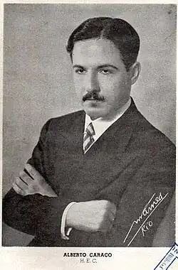 Albert Caraco was born Istanbul on 8 July 1919 to a Jewish family.[3] His family relocated in Vienna, Prague and later in Berlin, before settling in Paris. He attended the Lycée Janson de Sailly and graduated from Ecole des Hautes Etudes Commerciales in 1939.[1] At the same year, Caraco and his family fled to South America due to Nazi threat and approaching World War II.[3] His family received Uruguayan citizenship and converted to Catholicism.[4] In early 1940s, Caraco published a series of poems and plays.[1]