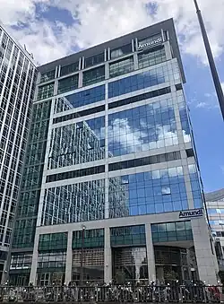 By September 2016, Amundi had moved all of its real estate, private debt, private equity and infrastructure investments onto a single platform dedicated to "real and alternative assets".[30] Creating this line of business brought together €34 billion of assets under management, with the objective of reaching €70 billion of AUM by 2020. The division is predominantly made up of real estate investments. Among the buildings acquired by Amundi since the platform's launch are those in the La Défense business district of Paris, including Cœur Défense (acquired in 2017 in partnership with Crédit Agricole Assurances and Primonial REIM)[31] and the Hekla Tower (acquired off-plan in 2017 in partnership with Primonial REIM). Amundi's property holdings are structured as real estate investment vehicles; the most important of these, "OPCIMMO", was launched in 2011.[32] In private equity, Amundi created Amundi Private Equity Funds, a subsidiary aimed at acquiring stakes in unlisted companies. It offers both debt and equity financing for companies. One debt fund launched by the asset manager in 2017 was backed by physical stocks of ham and Parmesan held in Italy, according to the financial press.[33] In the field of infrastructure investment, Amundi developed a partnership with French energy supplier Électricité de France (EDF) by creating ‘Amundi Transition Energétique’, a subsidiary owned 60% by Amundi and 40% by EDF, to finance projects related to renewable energies.[34] In 2017, Amundi also developed a partnership with the French Alternative Energies and Atomic Energy Commission by creating ‘Supernova Invest’, a company 40% owned by Amundi Private Equity to invest in technological innovation projects in France.[35]