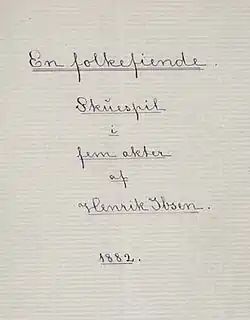 An Enemy of the People (original Norwegian title: En folkefiende) is an 1882 play by Norwegian playwright Henrik Ibsen that explores the conflict between personal integrity and societal norms. The play centers on Dr. Thomas Stockmann, who discovers a serious contamination issue in his town's new spas, endangering public health. His courageous decision to expose this truth brings severe backlash from local leaders, including his brother Peter Stockmann, who is a powerful political figure in the town.