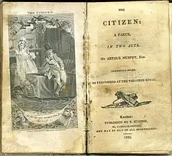 Murphy wrote plays, including The Citizen, a farce, first produced at Drury Lane in 1761, with Elliot in the role of Maria. David Garrick was disparaging about her acting, but he did offer her a contract. However, Garrick did not say that he would pay her, so she went to Spranger Barry's Crow Street Theatre in Dublin for a season.[1] [2] She then returned to work in London, appearing in comedies at Covent Garden for three years. In about 1765, Augustus Hervey, 3rd Earl of Bristol wanted her to leave the stage and become his mistress.[1] Hervey was known as the "English Casanova". Her friendship with Murphy continued. In 1767 she took the role of Mary Ann in his new play The School for Guardians. Murphy was given the profits from two of the six nights it was performed and he gave that money to Elliot.[1]