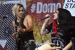 New Years Day released its second album Victim to Villain in June 2013 through Century Media Records.[13] The band joined the 2013 Vans Warped Tour and performed 40 shows, "the longest-running touring music festival in North America" to this day.[14] The band jumped on back-to-back tours with Otep and Stolen Babies in Fall 2013 and William Control and Combichrist in Spring 2014.[15][16]