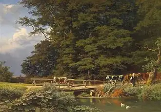 August Bromeis, a landscape painter, who was born at Wilhelmshöhe in 1813, first studied in the academy of his native town, then at Munich, from 1831 to 1833, in which year he went to Rome, where he was much influenced by the style of J. A. Koch. Bromeis returned to Germany in 1848, and resided at Frankfurt am Main and Düsseldorf, and at Cassel [sic], where he was made Instructor and Professor of Painting at the Academy in 1867. He died at Cassel in 1881. His most successful pictures were idealized landscapes, for example: