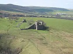 The signal box and southwest abutment of the demolished Belah Viaduct, in 2006