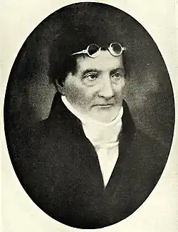 Heading the list of 191 people pledging for this purposes between one guinea and twenty guineas annually,[2] was town's proprietor, the Marquess of Donegall.[3] The president was Earl O'Neill.[4] Yet among the subscribers in the largely Presbyterian town were many who, as United Irishmen, had challenged the aristocracy and their Anglican establishment. The Society was chaired by Gilbert McIlveen, a founding member of the United Irishmen[5] and counted on the support of Dr. William Drennan who as author of the United Irish test or pledge had called for the "union of power among Irishmen of every religious persuasion";[6] Drennan's sister and political confidant, Martha McTier; Francis, John, and Mary Ann McCracken, brothers and sister to Henry Joy McCracken who in 1798 had led the rebels who killed Earl O'Neill's father in battle at Antrim and was subsequently hanged; Robert Tennent's brother William, a former state prisoner; and Thomas McCabe, whose son William Putnam McCabe was forced into French exile after seeking with Robert Emmet to renew the republican insurrection in 1803.[3]