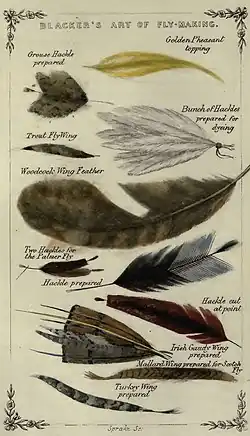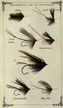 Blacker's Art of Fly Making - comprising angling and dyeing of colours with engravings of Salmon and Trout flies shewing the process of the gentle craft as taught in the pages with descriptions of flies for the season of the year as they come out on the water is a work of fly tying literature with significant fly fishing content written by William Blacker, a London tackle dealer and first published in London in 1842 by George Nichols.[1] The 1842 and 1843 editions were only 48 pages while, the 1855 edition was considerably expanded by Blacker with hand-painted, colored illustrations and 252 pages.