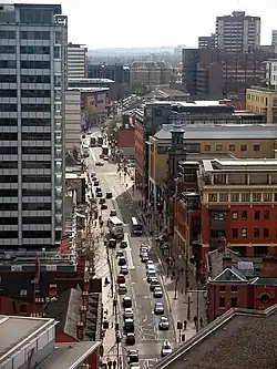 Broad Street is a major thoroughfare and popular nightspot centre in Central Birmingham, England. Traditionally, Broad Street was considered to be outside Birmingham City Centre, but as the city centre expanded with the removal of the Inner Ring Road, Broad Street has been incorporated into the new Westside district of the city centre due to its position within the A4540 road.