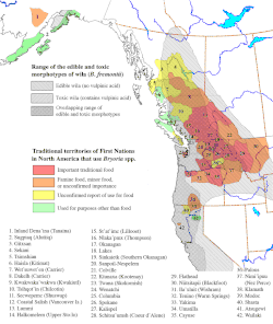 - ^ Compton, B. D. 1993. Upper North Wakashan and Southern Tsimshian Ethnobotany: The Knowledge and Usage of Plants and Fungi among the Oweekeno, Hanaksiala (Kitlope and Kemano), Haisla (Kitamaat) and Kitasoo Peoples of the Central and North Coasts of British Columbia. Ph.D. thesis, University of British Columbia, Vancouver, British Columbia, Canada