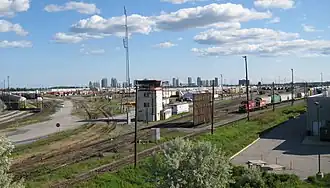 One of the largest marshalling yards in Canada (432 acres site with 90 miles (140 km) of track and 311 switches), the Toronto Yard is used to switch freight cars.