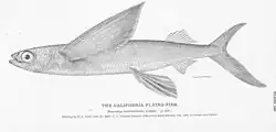 13. ^ a b Breder, C.M. Jr. (December 1930). "On the Structural Specilization of Flying Fishes from the Standpoint of Aerodynamics". Copeia. 1930 (4): 114–121. doi:10.2307/1436467.