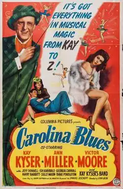 Carolina Blues is a 1944 American comedy film directed by Leigh Jason and written by Joseph Hoffman, Al Martin and Jack Henley. The film stars Kay Kyser, Ann Miller, Victor Moore, Jeff Donnell, Howard Freeman, Georgia Carroll, M.A. Bogue, Harry Babbitt and Sully Mason. The film was released on December 20, 1944, by Columbia Pictures.[1][2][3]
