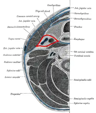 {{cite book}}: CS1 maint: location missing publisher (link) - ^ a b c d e f g h i j k l m n o p Garner, Darren H.; Kortz, Michael W.; Baker, Stephen (2022), "Anatomy, Head and Neck, Carotid Sheath", StatPearls, Treasure Island (FL): StatPearls Publishing, PMID 30137861, retrieved 2022-12-27