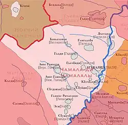The Chamalals are an indigenous people of Dagestan, North Caucasia living in a few villages in the Tsumadinsky District on the left bank of the Andi-Koysu river. They have their own language, Chamalal, and primarily follow Sunni Islam, which reached the Chamalal people around the 8th or 9th century. There are about 5,000 ethnic Chamalals (1999, Kubrik).[2] They are culturally similar to the Avars.
