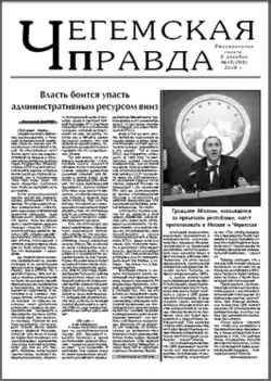 8 December 2009 front page of the Chegemskaya Pravda | |