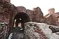 It is not known exactly when the Curtea Domnească complex was built, but it certainly replaces an old manor house still in place by the 15th century during the reign of Mircea I of Wallachia.[4] Nevertheless, the first documentary mentions of the Curtea Domnească date from 1403 and 1409. It is therefore believed that the construction works started during the first reign of Vlad the Impaler, but that the complex remained unfinished. Archaeological excavations conducted in the mid-20th century have revealed that the Chindia Tower dates from the second half of the 15th century leading historians to propose that it is the "castle" referred to in the November 11, 1476, account of Hungarian nobleman Stephen V Báthory.[5] However, the tower is explicitly mentioned in documents at a relatively late moment. In 1595 Venetian traveler Antonio Pigafetta recorded the existence of a "tower in a church", which had an underground gallery in the direction of the Ialomiţa River.[6] In 1703 Rev. Edmund Chishull, chaplain to Lord Paget's English embassy at İzmir, said after visiting the place that the building was comparable to towers of "civilized Christianity".[7]