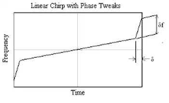 An alternative form of waveform 'tweaking' is where frequency modulation distortion is applied to the chirps, instead of amplitude modulation.[23][52][53] The two types of distortion are functionally similar when the distortion levels are low. As with amplitude modulation, best results are obtained when both the expander and compressor waveforms are modified.