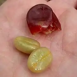 The tea is described as fruity and floral; the fruits are described as not dissimilar to other dried fruits such as apricots, cranberries, and raisins,[5] and the flour has a fruity flavor.[11]