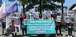 Comfort women were women and girls forced into sexual slavery by the Imperial Japanese Armed Forces in occupied countries and territories before and during World War II.[2][3][4][5] The term comfort women is a translation of the Japanese ianfu (慰安婦),[6] a euphemism that literally means "comforting, consoling woman".[7] During World War II, Japanese troops forced hundreds of thousands of women from Australia, Burma, China, the Netherlands, the Philippines, Japan, Korea, Indonesia, East Timor, New Guinea and other countries into sexual enslavement for Japanese soldiers; however, the majority of the women were from Korea.[8] Many women died due to brutal mistreatment and sustained physical and emotional distress. After the war, Japan denied the existence of comfort women, refusing to provide an apology or appropriate restitution. After numerous demands for an apology and the revelation of official records showing the Japanese government's culpability, the Japanese government began to offer an official apology and compensation in the 1990s.[9][10] However, apologies have been criticized as insincere by some victims, advocacy groups, and scholars. Many Japanese government officials have continued to either deny or minimize the existence of comfort women.