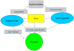 Testing the design ideas with paper prototypes or even with more sophisticated interactive prototypes before the implementation phase helps the designers communicate with users about the new system and develop the design further. Prototypes test the structure of a User Environment Design and initial user interface ideas, as well as the understanding of the work, before the implementation phase.[2] Depending on the results of the prototype test, more iterations or alternative designs may be needed.