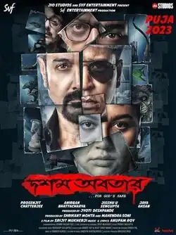 Dasham Avatar...For God's Sake (transl.The 10th Avatar... For God's Sake) is a 2023 Indian Bengali-language neo-noir buddy cop action thriller film written and directed by Srijit Mukherji. Produced by Shrikant Mohta, Mahendra Soni and Jyoti Deshpande under the banners of Shree Venkatesh Films and Jio Studios,[2][3] the film serves the fourth installment in Mukherji's Cop Universe.[4] It stars Jisshu Sengupta in the titular role, alongside Prosenjit Chatterjee, Anirban Bhattacharya and Jaya Ahsan in lead roles.[5][6][7] Set in the backdrop period 2003-2004 Kolkata, the film follows Prabir and Poddar, two serial-killing experts from Lalbazar, being hired to solve several gruesome murders of people involved with corruptions, where the killer claims himself to be the Kalki Avatar.