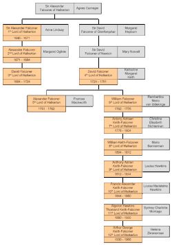 - ^ Paul McKee Gifford. Falconer of Halkerton: A Genealogy of a Scottish Family and its branches in England, the United States, and Jamaica, including those spelled "Falconar" and "Faulkner". Heritage Books, Inc., Maryland USA. ISBN 9780788406157