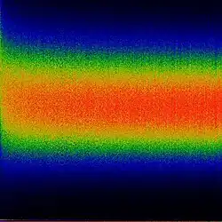 The summatory function, with leading terms removed, for , graphed as a distribution or histogram. The vertical scale is not constant left to right; click on image for a detailed description.