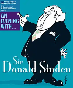 Sinden was a leading figure in the campaign to found the Theatre Museum in London's Covent Garden in the 1980s.[6] In 2007, Sinden embarked on a UK, European and American theatre tour to talk about his life, work and anecdotes in An Evening with... Sir Donald Sinden. Produced by his son Marc, this included, on 8 November 2007 as part of Marc's British Theatre Season, Monaco, a performance in front of Prince Albert of Monaco (the son of Grace Kelly, his co-star in the film Mogambo) at the Théâtre Princesse Grace, Monte Carlo.[20]
