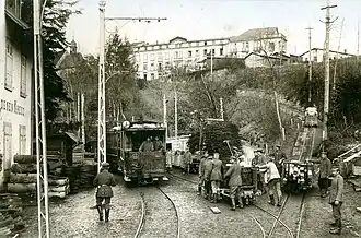 - ^ Transport of a wounded soldier by the electric tramway.