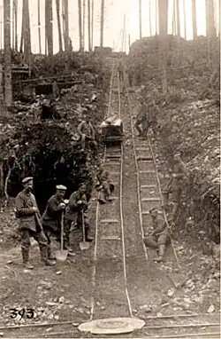 On 31 December 1917, the Bavarian FeBA 24 (Feldbahnamt, Light Railway Office) took over the line and operated it until May 1918. After that, FeBA 50 took over the line until the end of the war.[9][10]