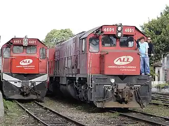 The EMD GT22CUM1 is a narrow gauge diesel-electric locomotive built by EMD. It has six axles in two trucks, giving it a C-C wheel arrangement. The name means a C-C locomotive, U for metre gauge (the rails are a metre apart), 12-cylinder 645 series. They were built for service in South America by the Villares with license of EMD. The Rede Ferroviaria Federal Sociedade Anonima (RFFSA) a state railroad in Brazil bought about 55 in the early 1980s in order to expand their locomotive roster. The RFFSA needed a powerful single-engined locomotive with light weight per axle for their metric system, and the GT22 represented the highest-rated model that EMD had to offer at the time.
