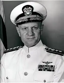 Feightner received orders in February 1959 to relieve the air wing commander of Carrier Air Group Ten (CVG-10) on the USS Forrestal (CV-59) that was deployed in the Mediterranean.[72] He continued to serve as CAG-10 when the air wing embarked on the USS Essex (CV-9) the following month and returned to the "Med" for another tour.[73] From February to July 1960, Feightner served on the staff of Carrier Air Group Four (CVG-4) where he helped write some of the first Naval Air Training and Operating Procedures Standardization (NATOPS) manuals with the goal of reducing the Navy's aircraft accident rate.[74] In July 1960, he reported to the Naval War College in Newport, Rhode Island, to study areas such as military tactics and wargaming. Feightner graduated in 1961.[75]