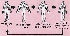 The effects of microgravity on fluid distribution around the body (greatly exaggerated).