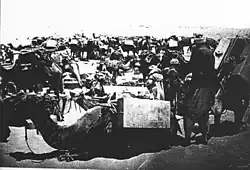 About 10,000 Egyptian Camel Transport Corps camels concentrated at Romani as well as innumerable troops prior to the attack.[20][21] Until more camel transport was accumulated at Romani and Pelusium for the distribution of supplies and drinking water from railhead, the firepower of the main defences could only be increased by moving up the machine gun companies of 53 and 54 Divisions.[22]