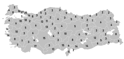 40 Kırşehir[n 11] 7 5 3 3 4 5 4 4 3 5 4 3 3 3 3 3 3 3 3 3 3 3 3 2 2 2 2 2