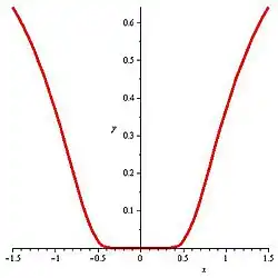 is flat at . Thus, this is an example of a non-analytic smooth function. The pathological nature of this example is partially illuminated by the fact that its extension to the complex numbers is, in fact, not differentiable.
