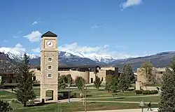 The La Plata Mountains rise behind the Fort Lewis College campus.