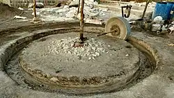 The gates of medieval Indian forts were highly decorated.[9] Two distinct styles are seen. The Hindu style with a lintel, and the Mughal style with an arch. Gates in Indian forts were often high and wide to allow elephants to pass.[10] Often they had rows of sharp, stout iron spikes to dissuade an attacking army from using elephants to break down the gates.[11] Such a gate with spikes can be seen on the Shaniwarwada fort, Pune. The walls of the forts were often looked higher from the outside than the inside as the forts made use of the natural rock formations on hills. This not only gave an illusion of greater height but also lead to the lower walls of the fort to be entirely made up of natural rock providing almost a perfect defense against the use of a battering ram or war elephants to tear down the walls.[12] The main gate to the forts was located mostly facing north direction, this was to avoid its deterioration by the rains, winds and the sun.