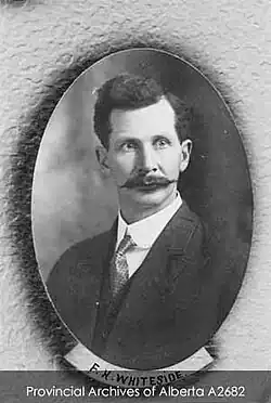 Frank Henry Whiteside was born in Ottawa, Ontario on July 15, 1873, to Henry Whiteside and Hannah L. Stone,[1] but grew up in Sussex, New Brunswick.[2] Whiteside earned a commercial diploma, and moved west in 1892, to British Columbia and then to the Innisfail area of Alberta in 1894.[2]