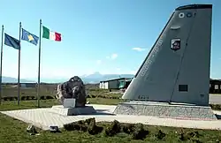 Memorial to the first flight to land at Gjakova Airport on 23 September 1999, an Italian Airforce G 222