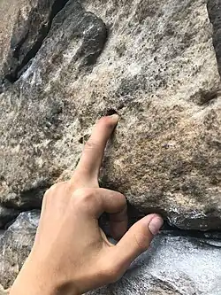 An awkward climbing technique where the knee is placed on the hold rather than the foot.[7]