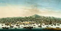 The Qing became somewhat more receptive to foreign trade after gaining control of Taiwan in 1683.[93] The Portuguese from Macau and Spaniards from Manila returned, as did private Muslim, Armenian, and English traders.[94] From 1699 to 1714, the French and British East India Companies sent a ship or two each year;[94] the Austrian Ostend General India Co. arrived in 1717,[95] the Dutch East India Co. in 1729,[96] the Danish Asiatic Co. in 1731, and the Swedish East India Co. the next year.[94] These were joined by the occasional Prussian or Trieste Company vessel. The first independent American ship arrived in 1784, and the first colonial Australian one in 1788. By that time, Guangzhou was one of the world's greatest ports, organized under the Canton System.[97] The main exports were tea and porcelain.[94] As a meeting place of merchants from all over the world, Guangzhou became a major contributor to the rise of the modern global economy.[98] Guangzhou is the site of the Thirteen Factories, which were the only legal place to conduct foreign trade with China from 1757 to 1842.[99]: xviii