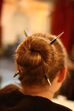 Hair sticks have been in use for thousands of years, and have been found in cultures of the ancient Egyptians, Romans, and Greeks, India and China. Although some of these have been jewelled, luxury items, such as the gold hair sticks of Egypt,[1] more common, wooden hair sticks have also been found in cultures such as Rome,[2] suggesting that they were in wide use amongst people regardless of their financial standing. However, the most influential culture on modern hair sticks has been Japanese, and in particular the use of decorative Japanese kanzashi.
