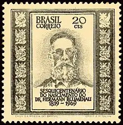 Hermann Bruno Otto Blumenau (German pronunciation: [ˈhɛʁman ˈbʁuːno ˈɔto ˈbluːmənaʊ̯]; December 26, 1819 – October 30, 1899) was a German pharmacist who founded the city of Blumenau, situated in the Itajaí-Açu river valley in the state of Santa Catarina, Brazil.
