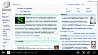 The UI can be revealed by a right click of the mouse or by a swipe from the top or bottom edges of a touchscreen.[38] When the UI is shown, the tabs are listed on the top of the screen, with a small preview of the webpage on each tab. A button to add a new tab is placed in the top-right corner. At the bottom of the screen, the address bar and navigational buttons are shown. Navigational buttons include the Back button (to navigate to the previous page), the Refresh button (to reload active page), the Pin button (which create a new shortcut tile for the active page on the Start screen), and a wrench-shaped icon, which opens the only menu of IE10. It contains options such as "View on Desktop", which opens the current webpage on the desktop version of Internet Explorer 10, and "Find on page", which can find a text string (a word, phrase or arbitrary set of letters) in the active page.[38]