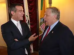 On February 20, 2008, Hoffa became the first major union leader to endorse Democratic senator Barack Obama in his bid to become president of the United States.[53] Hoffa campaigned in major states for Obama throughout the primary and general election. He served as a superdelegate to the 2008 Democratic National Convention[53] in Denver and a member of the Michigan Electoral College.[54][55]