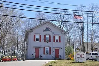 The John Adams School is a historic school building in Weymouth, Massachusetts. The Greek Revival/Italianate school building was built in 1855, on the site of Weymouth's first school building (1681). It is Weymouth's oldest surviving school building. It is 2+12 stories tall, with a front-facing gable roof that has a bracketed gable. The main facade is three bays wide, with windows that have bracketed surrounds, and a pair of entrances with bracketed cornices above.[2]