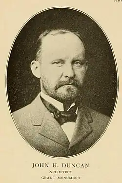 Duncan was the designer of the Wolcott Hotel. One of the most famous architects in the United States at the turn of the 20th century, his popularity rose after being selected as the architect of what is now Grant's Tomb,[3] another "reconstruction" of the Mausoleum of Halicarnassus (Greek Ionia).[4]